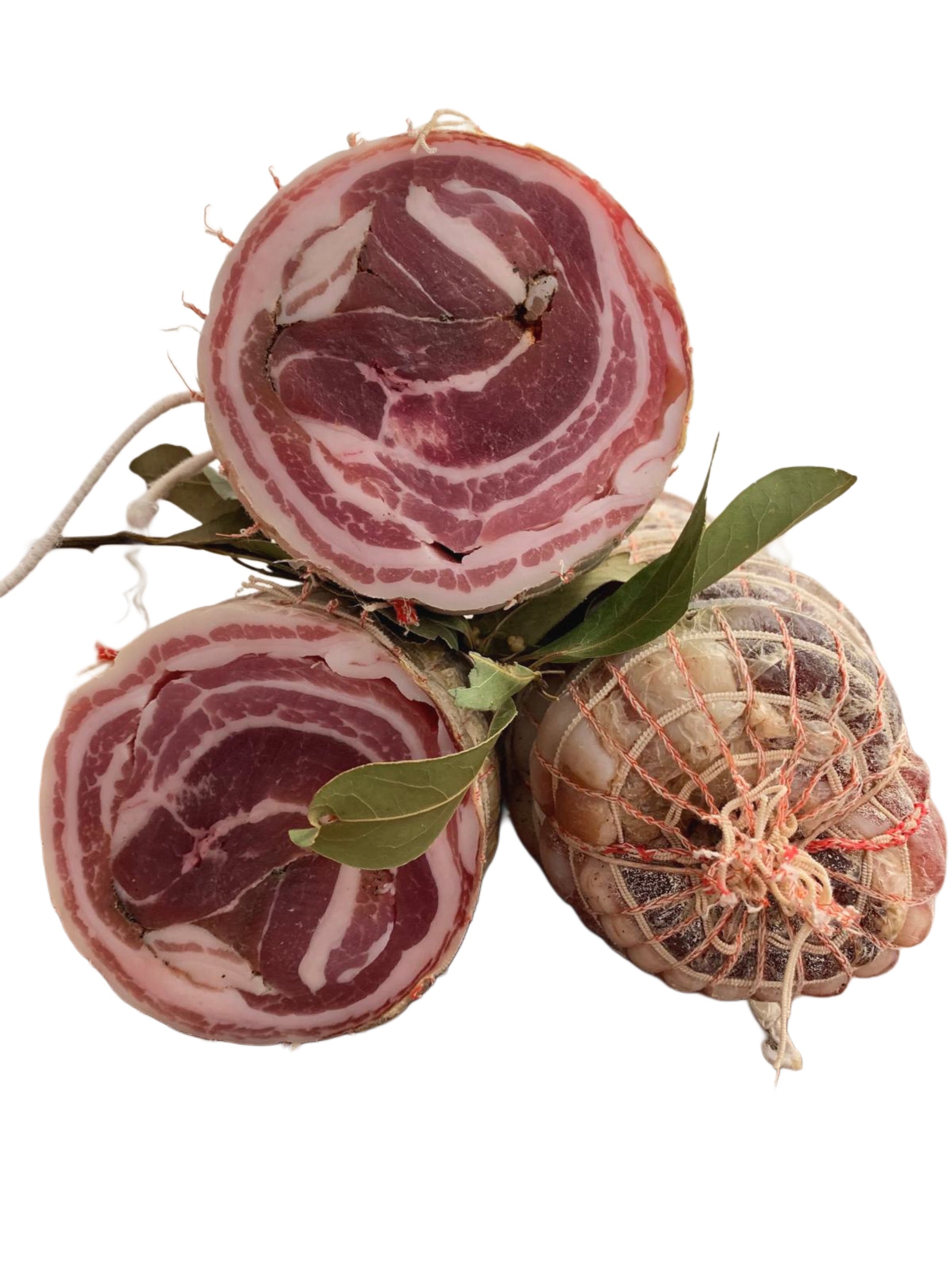 Questa gustosa pancetta con alloro è realizzato con ingredienti di alta qualità e lavorato con attenzione per offrire un sapore unico e autentico. Con il suo aroma di alloro, questa pancetta è perfetta per aggiungere un tocco di sapore ai tuoi piatti preferiti, rendendoli ancora più deliziosi e gustosi. Provala oggi stesso!